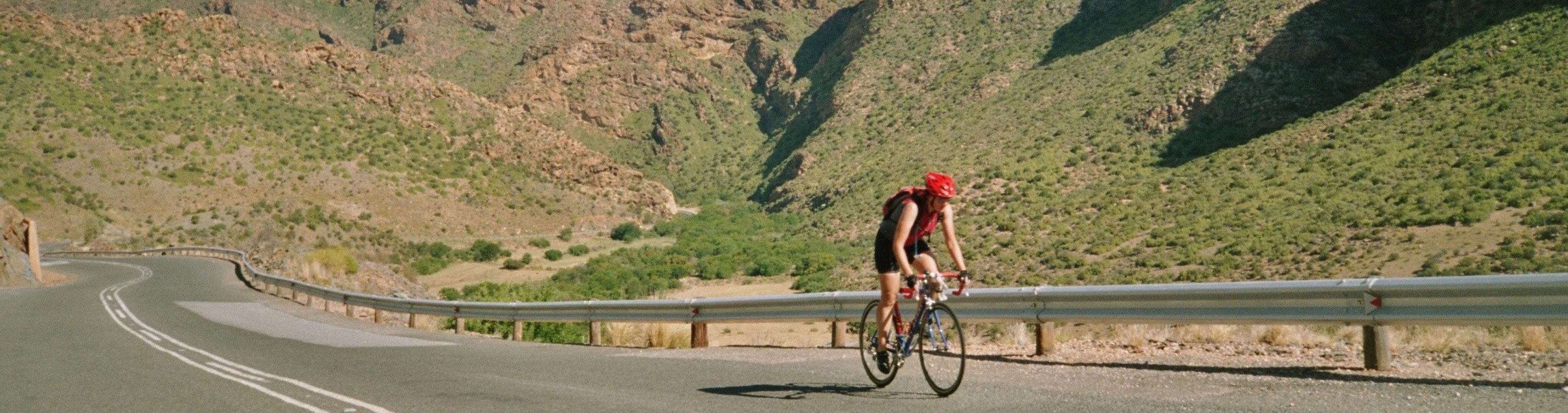 Cycle past fertile fruit and wine farms into the Klein Karoo Savannah. The vegetation is a mix of indigenous shrub and succulent plants, well adapted to the dry and hot climate. Carry on to the 1240 m high Rooihoogte Pass offering magnificent views towards the Langeberge Mountain range. Turn around and ride the same way back to Montagu. (B)
